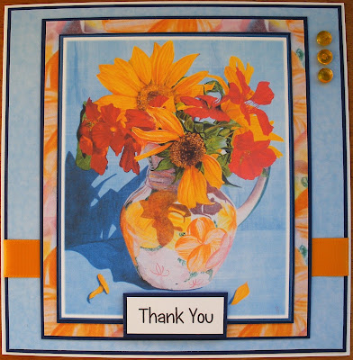 Today I have chosen "Thank You" as our latest challenge theme. It's always nice to thank people when they do you a good turn and even nicer to say it with a card.